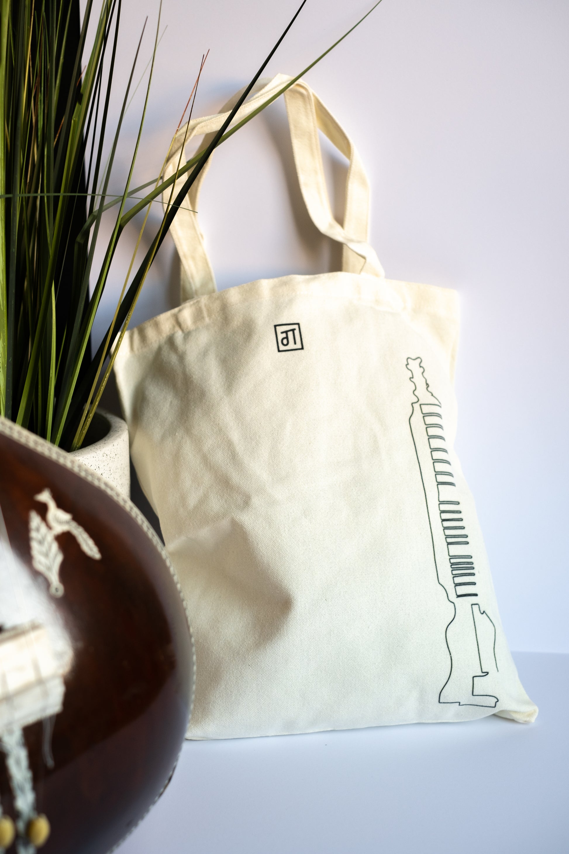 A dilruba is a classic string instrument used in Gurbani Sangeet. The design features a single-line art drawing of this instrument, beautifully presented by Australian Sikh artist, Kamal Kaur.