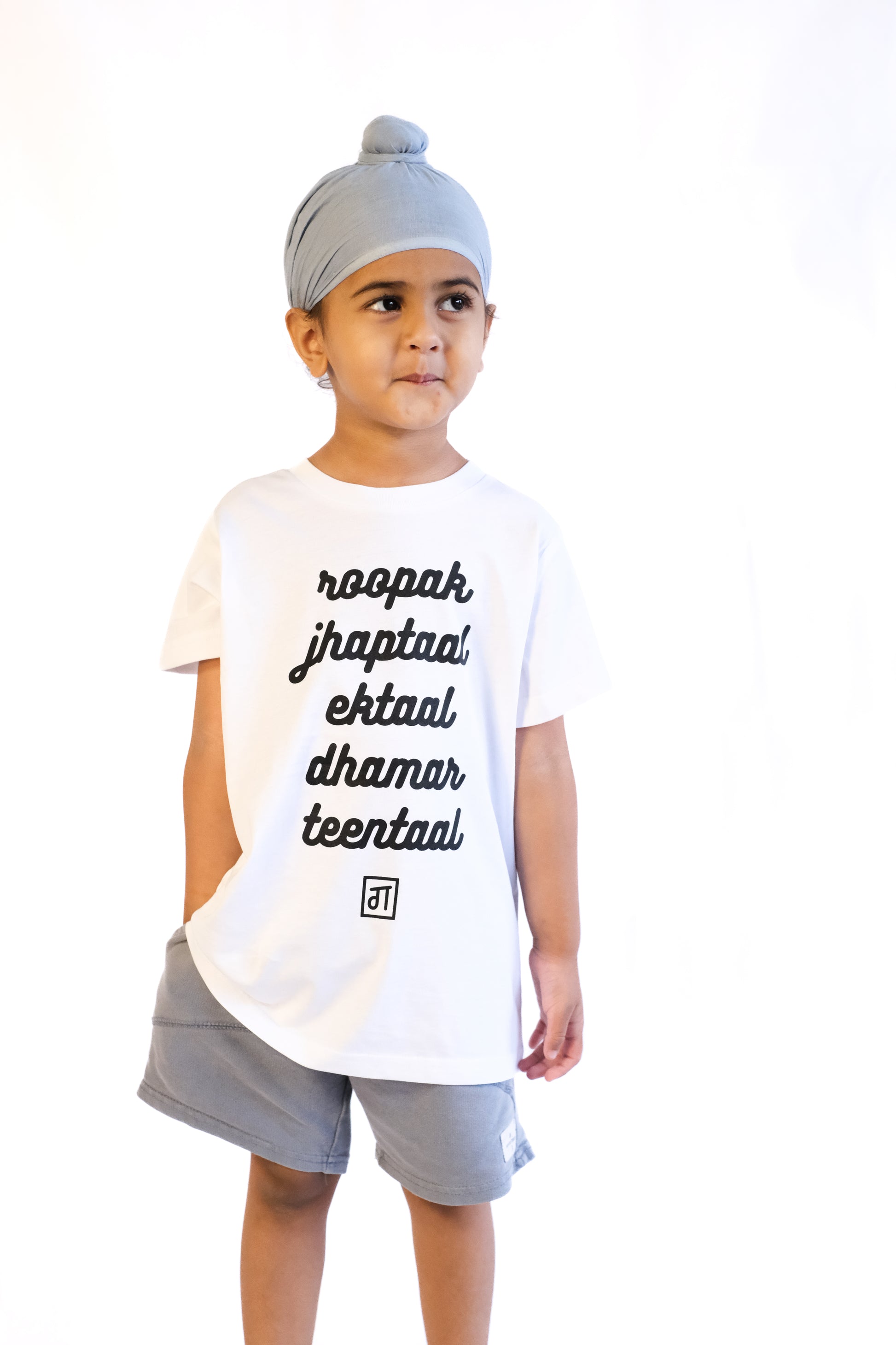 A taal refers to a traditional rhythmic pattern in Gurbani Sangeet (and in Indian Classical music in general). The design features just five of the many taals used in presenting Gurbani Sangeet.